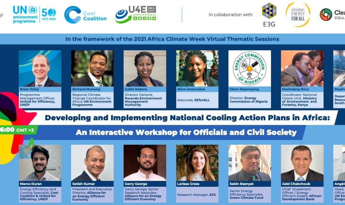 The workshop hosted with UNEP and U4E, will bring together participants from around the continent, linking them with experts to discuss how to develop and implement NCAPs, including lessons learned by countries in the region and financing opportunities for NCAP development and implementation.